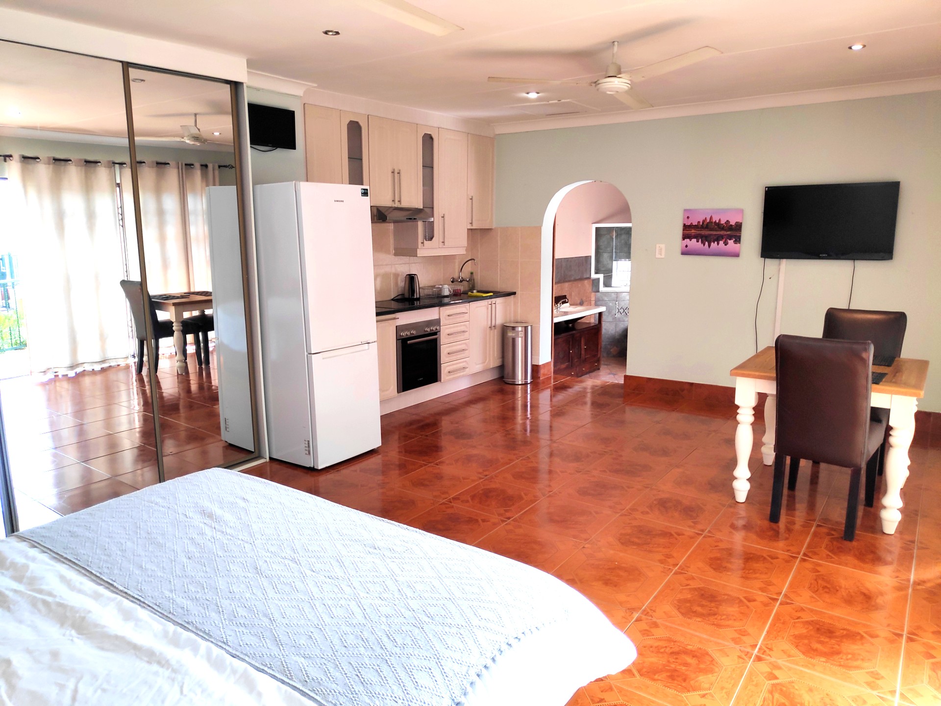 - Orion 1 (8000 Rand per month): Bedroom, kitchen, private terrace, and a bathroom (shower, bathtub and toilet).
